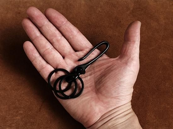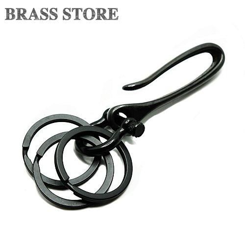 鉄製リング付き 真鍮 ブラス ツリバリ回転 フック キーリング ( ブラック)