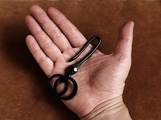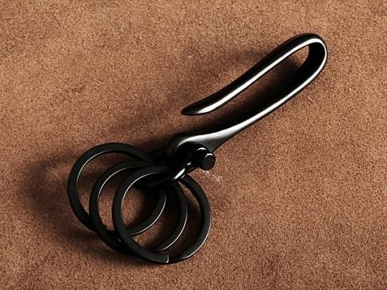 鉄製リング付き 真鍮 ブラス ツリバリ回転 フック キーリング ( ブラック)