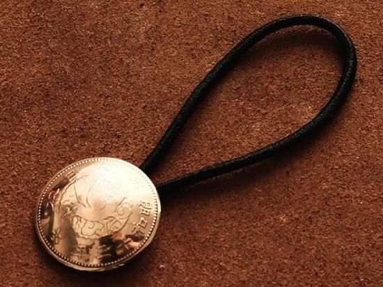 日本 1銭黄銅貨 コインコンチョ 23mm ヘアゴムブレスレット(カラス)