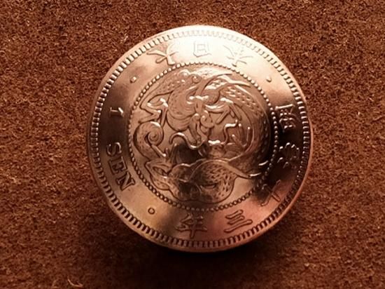 日本 一銭 コインコンチョ 27mm ヘアゴムブレスレット(竜一銭銅貨)