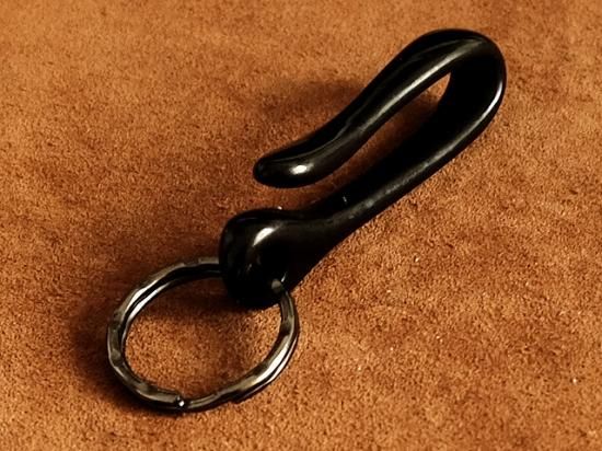 波型リング付き 真鍮 ブラス ツリバリフック キーホルダー ブラック (小)