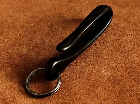 波型リング付き 真鍮 ブラス ツリバリフック キーホルダー ブラック (大)