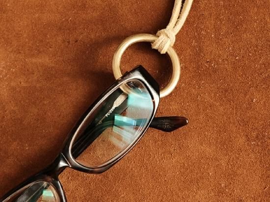 ディアスキンコード 真鍮リング付き レザーコード グラスホルダー 眼鏡掛け(ベージュ)