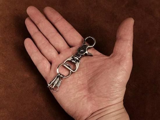 付属としてバネ式のキーフックが3点付きます。個別に鍵を装着できます。