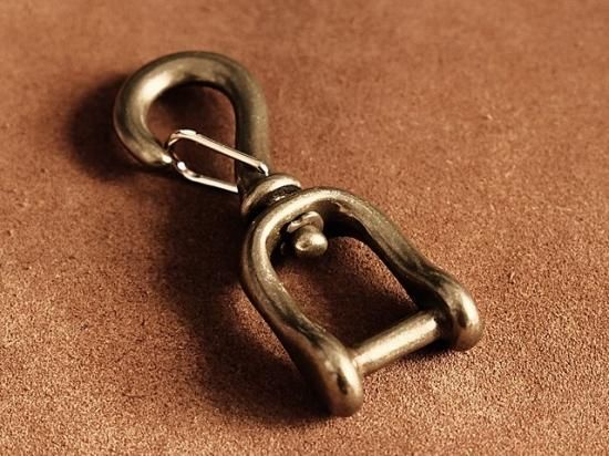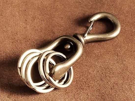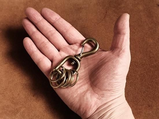真鍮 カラビナ シャックル 一体型 キーリング ブラス(二重リング)
