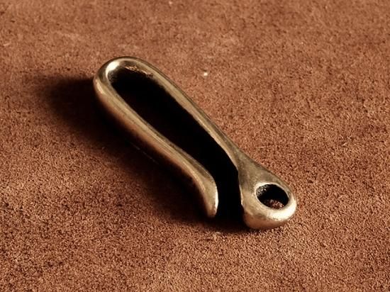 オール真鍮 勾玉 カラビナキーホルダー(三角押し二重リング)