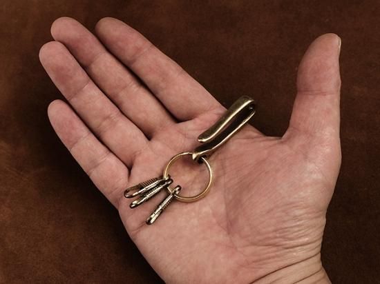 キーフック付き 真鍮 ツリバリ フック キーリング ゴールド (小)