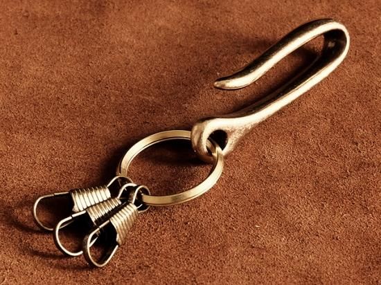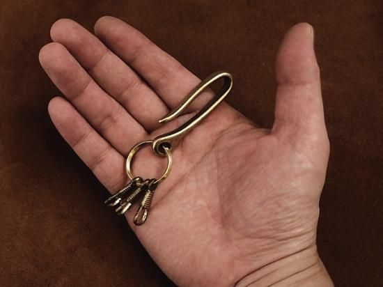 キーフック付き 真鍮 ツリバリ フック キーリング ゴールド (中)