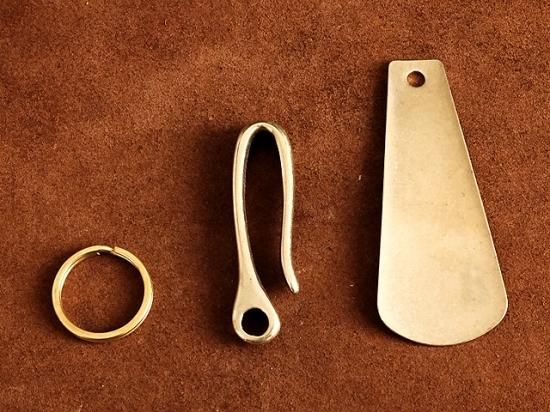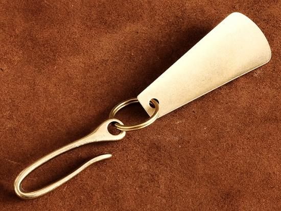 ツリバリフック付き 真鍮製 シューホーンキーホルダー(扇型)靴ベラ ブラス
