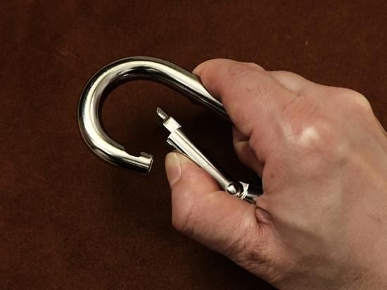 シャックルはマイナスネジで沈み込んでおり、引っかからないので緩みにく仕組みです。