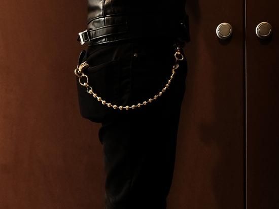 ショート 44cm 極太 真鍮 ボールウォレットチェーン(両端ナスカン)