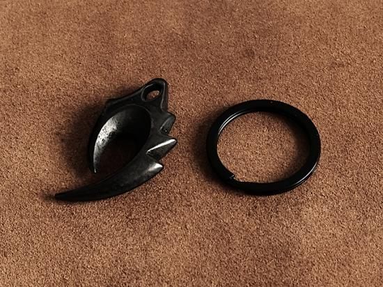 二重リング付き 真鍮製 カニ爪キーホルダー(ブラック)