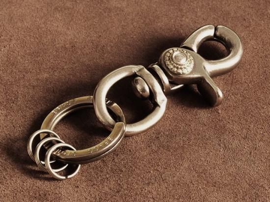 キーフック付き 真鍮 ツリバリ フック キーリング シルバー(大)