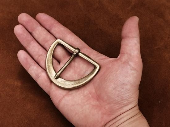 真鍮製 レザーベルト用バックル (半月デザイン)玉プラ仕上げ ベルト幅50mm