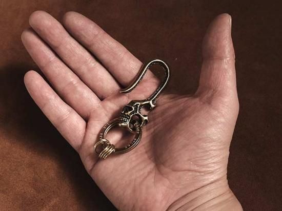オリジナル二重リング付き 真鍮 ツリバリキーホルダー(ドクロ)