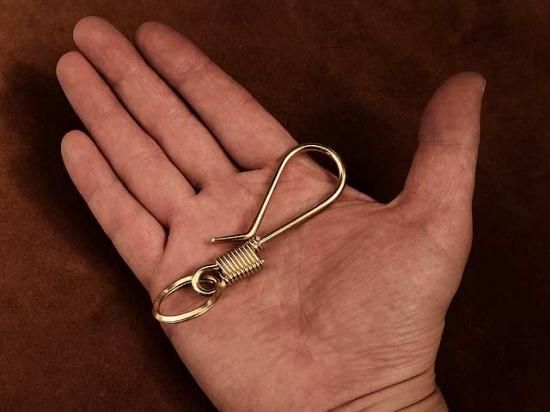 真鍮 コイル巻き ツリバリフック キーホルダー (Mサイズ)