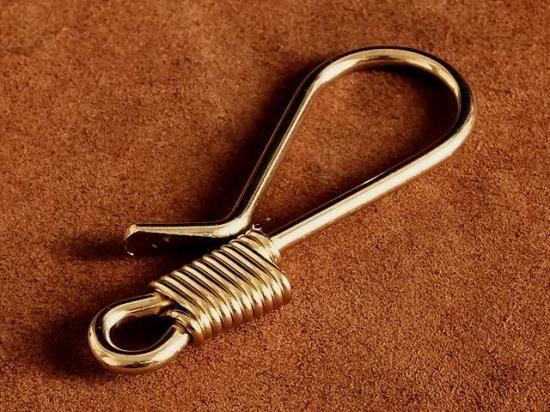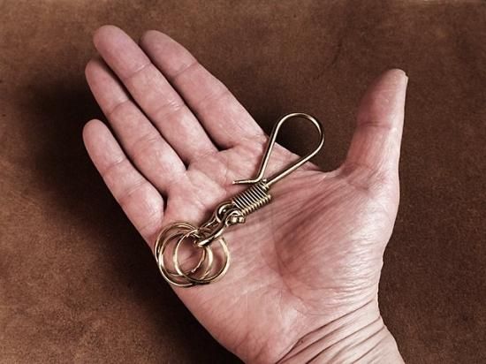 真鍮 コイル巻き ツリバリフック キーホルダー (リング3個 Mサイズ)