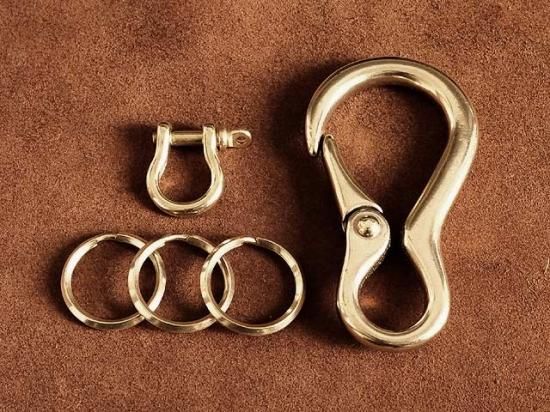 カラビナ、シャックル、ダブルリング全て真鍮となります。