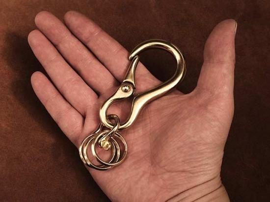 オール真鍮 だるまカラビナ キーホルダー(三角押し二重リング)