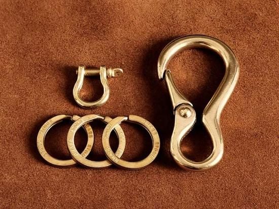カラビナ、シャックル、ダブルリング全て真鍮となります。