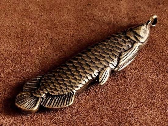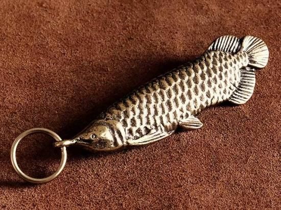 真鍮 アロワナ キーホルダー (二重リング付き)