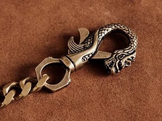 ロング 42cm 真鍮ウォレットチェーン (ドラゴンカラビナ仕様)