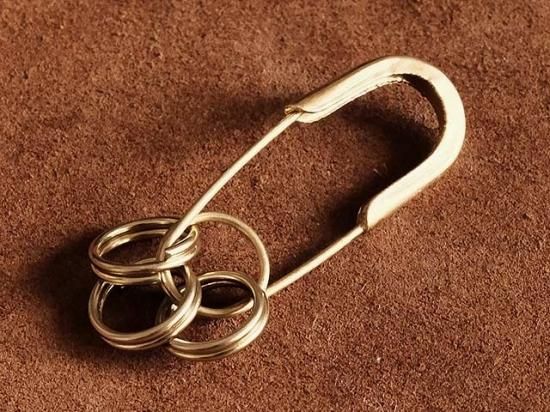 真鍮の安全ピンに二重リングを組み合わせたキーホルダー。