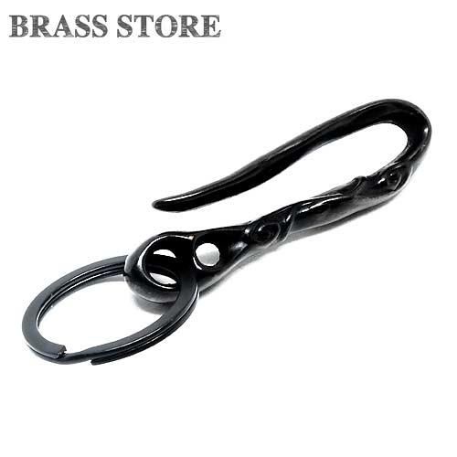 鉄製リング付き 真鍮 ブラス ツリバリ回転 フック キーリング ( ブラック)