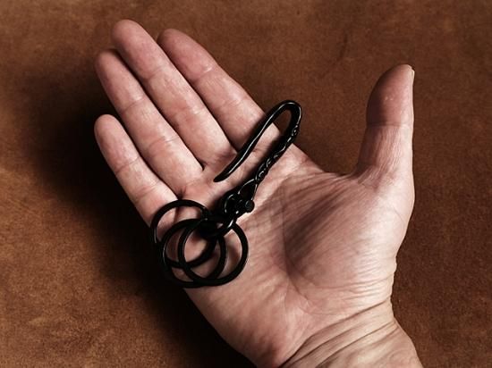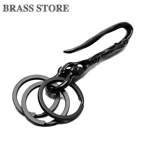 鉄製リング付き 真鍮 ブラス ツリバリ回転 フック キーリング ( ブラック)