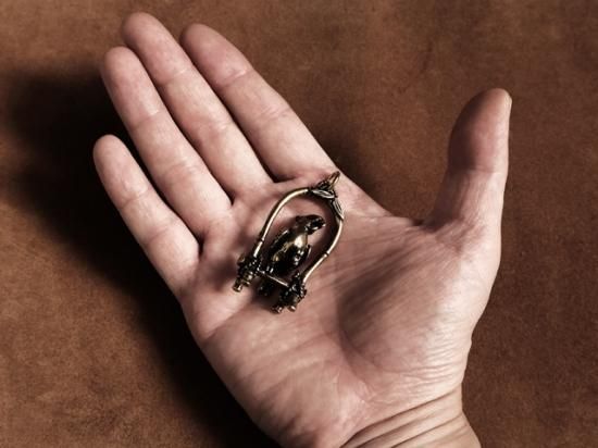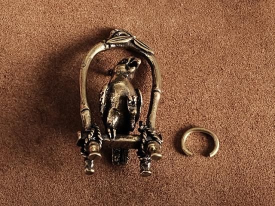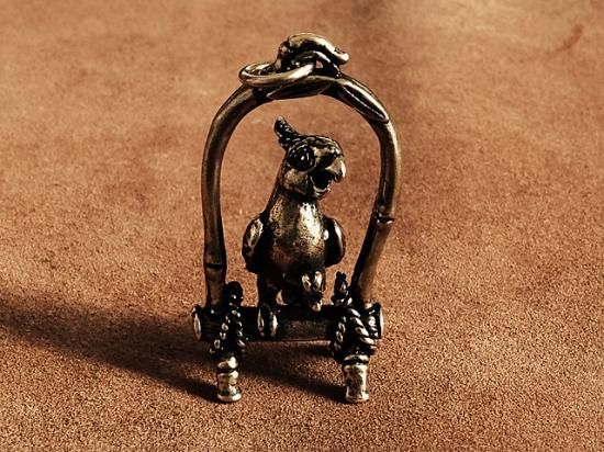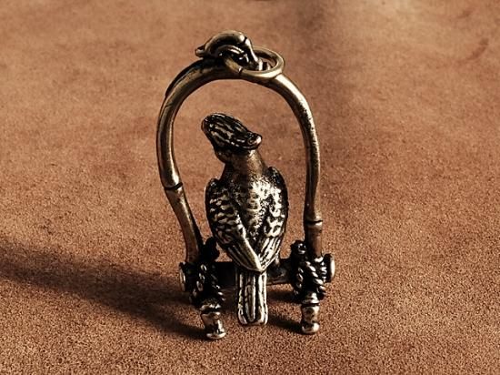 止まり木に止まって、片足を上げた愛嬌のあるデザインです。