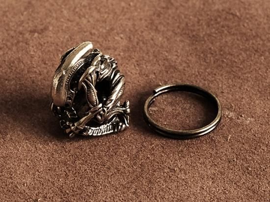 キーフック付き 真鍮 ツリバリ フック キーリング シルバー(大)