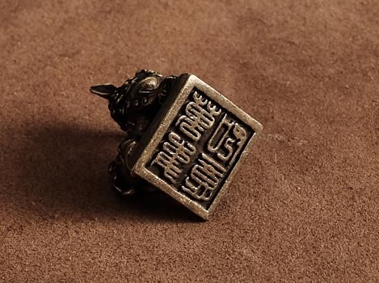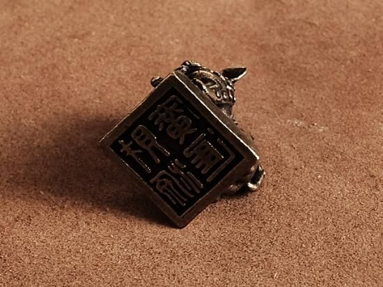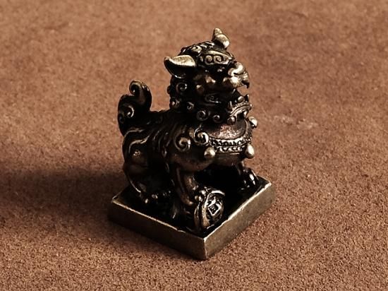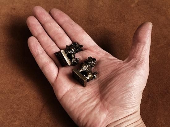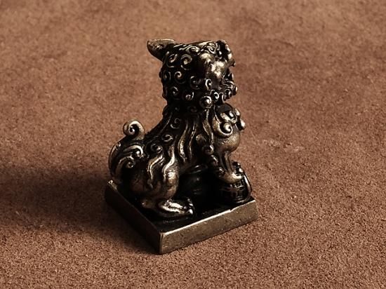 狛犬がデザインされた真鍮置物です。