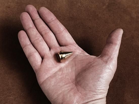 オール真鍮 勾玉 カラビナキーホルダー(三角押し二重リング)