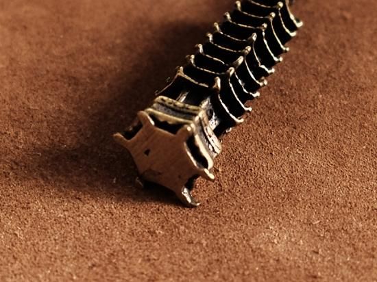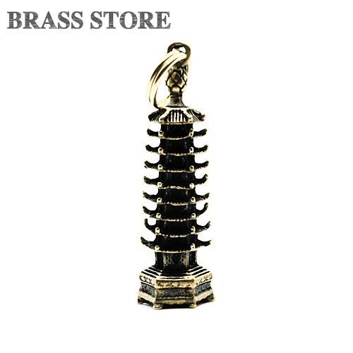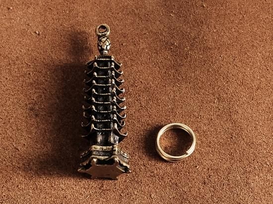オール真鍮 勾玉 カラビナキーホルダー(三角押し二重リング)