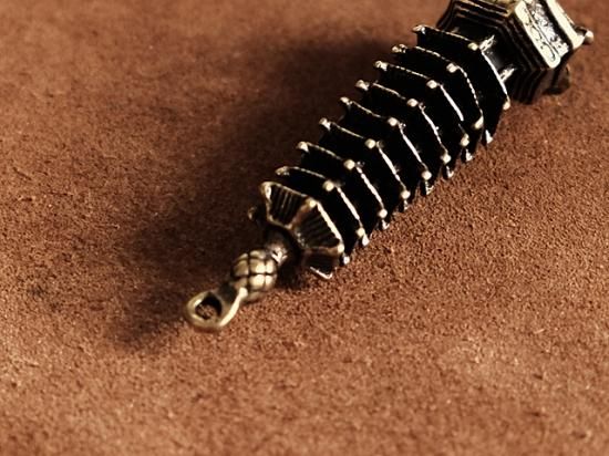 リング付き 真鍮 ねじりツリバリ キーホルダーシルバー シャックル仕様(大)
