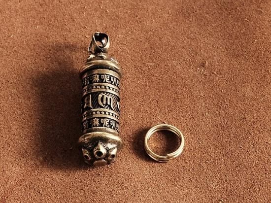 真鍮 ケースキーホルダー(六字真言)ブラス 梵字 密教法具 チベット