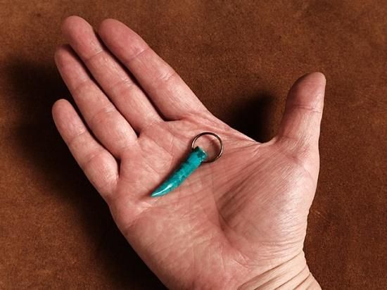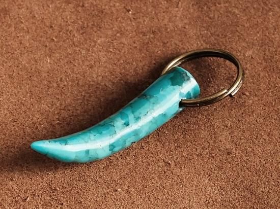 練りターコイズ キーホルダー(牙モチーフ)トルコ石
