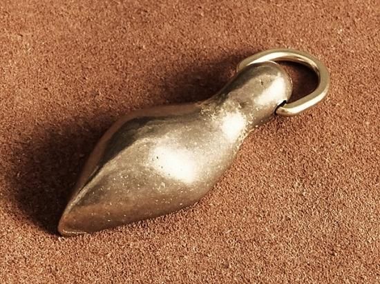 オール真鍮 勾玉 カラビナキーホルダー(三角押し二重リング)