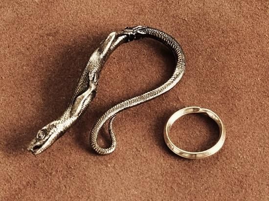 オリジナル二重リング付き 真鍮 カラビナキーホルダー(龍デザイン)