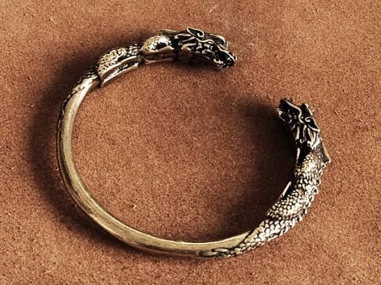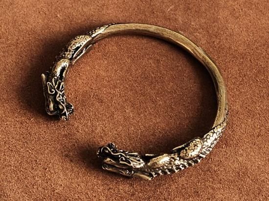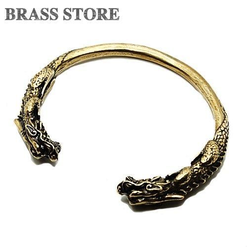 真鍮 バングル(ドラゴン)龍 竜 ブラス ブレスレット 腕輪 メンズ レディース ゴールド