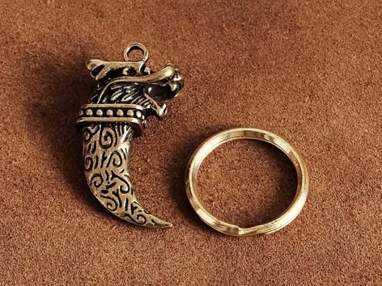 真鍮 キーホルダー(ドラゴンナイフ)龍 辰年 竜 牙 角