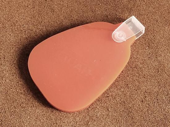 ラバー素材で出来た、サドル型のレトロなキーホルダーに、