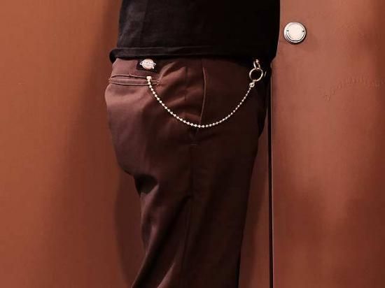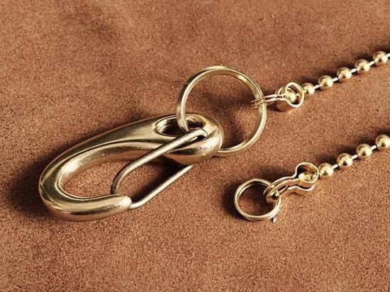 ショート 34cm 真鍮 ボールウォレットチェーン(勾玉カラビナ仕様 4mm幅ボール)