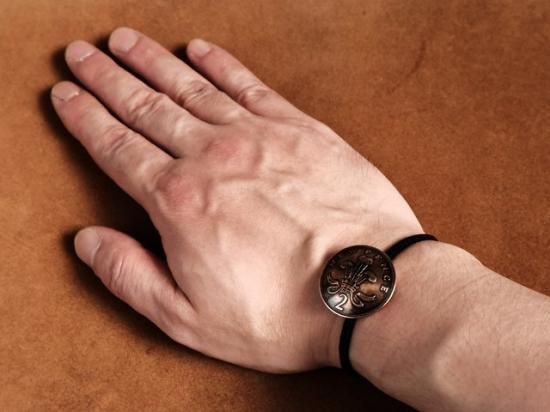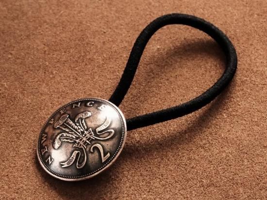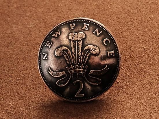 イギリス 2ペニー (羽根紋章)コインコンチョ 25mm 古銭 英国 硬貨