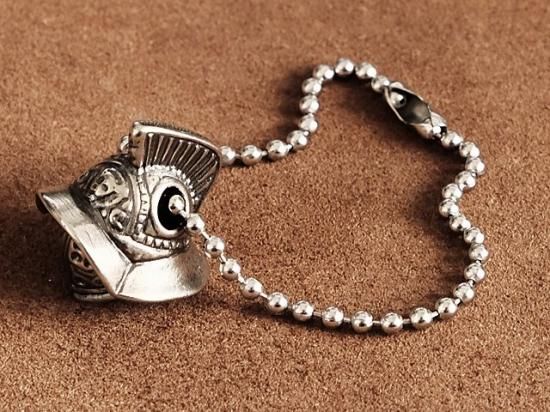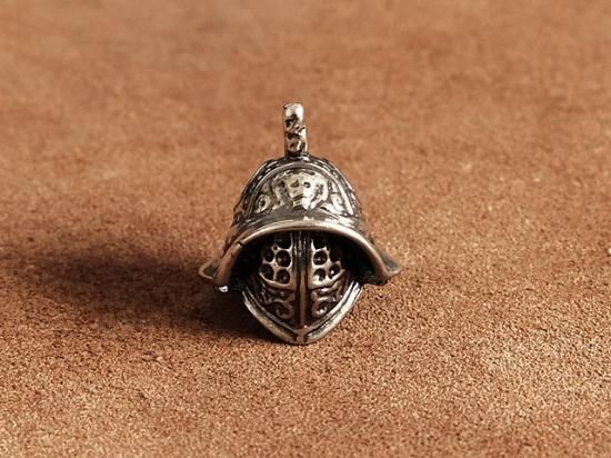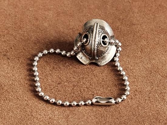 真鍮 チェーン付 兜 キーホルダー(シルバー) 鉄仮面 カブト 甲冑