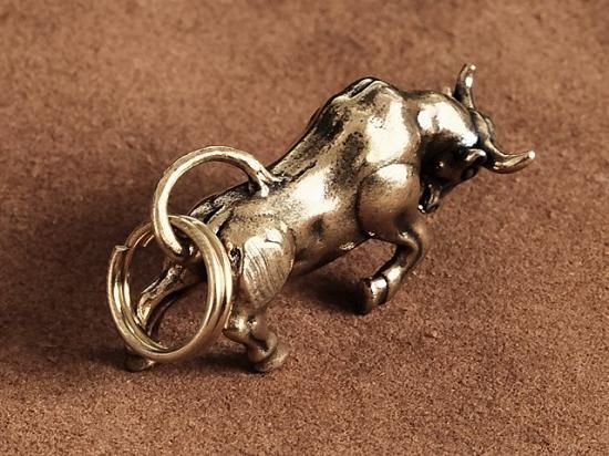 真鍮 牛 キーホルダー(闘牛)うし 角付き カウ バッファロー