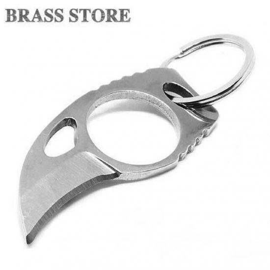 スチール製 ポケットナイフ(シルバー)キーホルダー 鋼 はがね ミリタリー