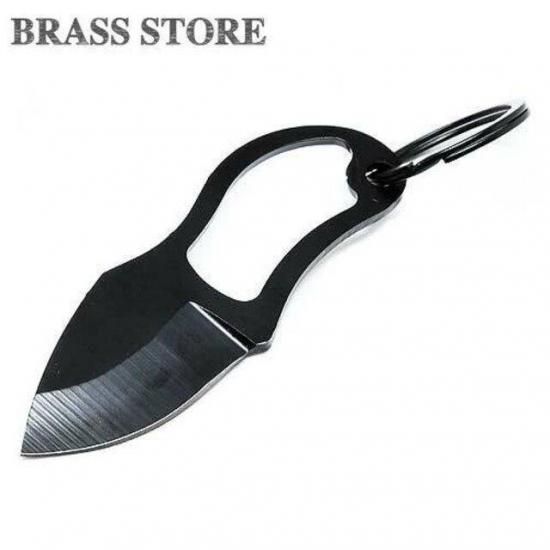 スチール製 ポケットナイフ(ブラック)キーホルダー 鋼 はがね ミリタリー