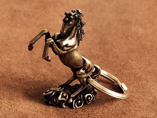 真鍮 馬 キーホルダー(上がり馬)フィギュア 騰馬 暴れ馬