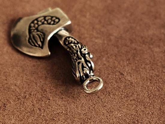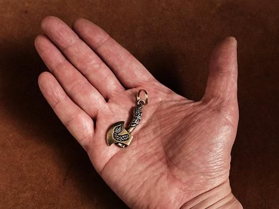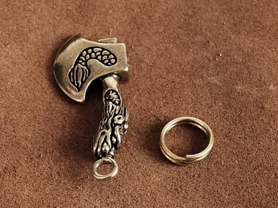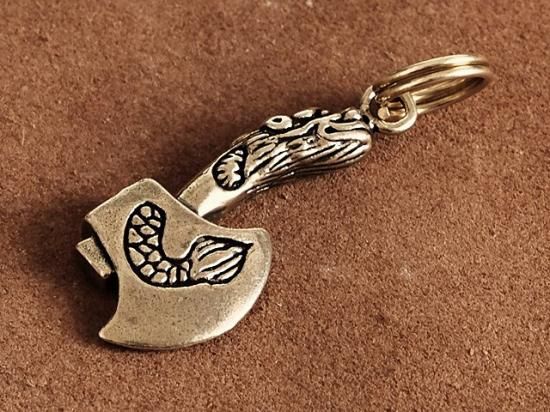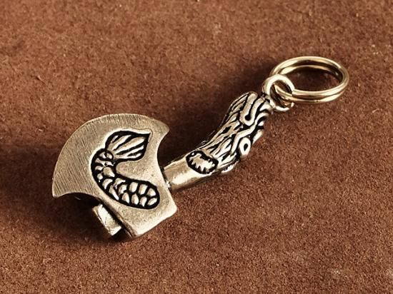 真鍮 斧 キーホルダー(龍デザイン)刃物 ブラス 鉞 手斧 アックス